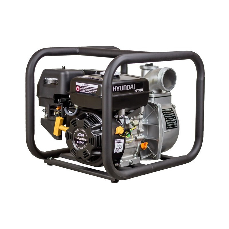 Motobomba gasolina HY80, para Aguas limpias. Caudal máximo 60 m, Altura máxima 30m, Diámetro partículas sólidas 9 mm, OHV (4 tiempos).