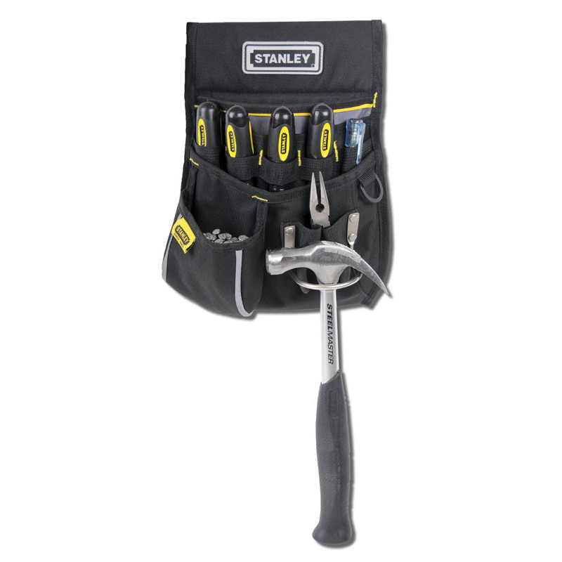 Dos bolsas para clavos, una bolsa para cinta métrica y un bucle para martillo integrado