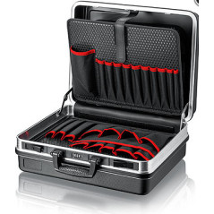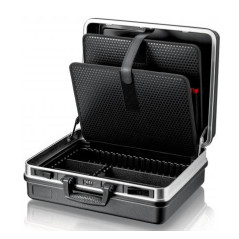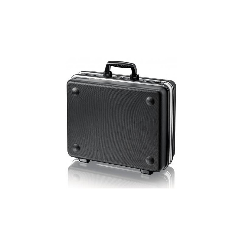 Diseño robusto en material ABS. Armazón de aluminio con ganchos en forma de "D". Cerradura de combinación de 3 números y 2 cerraduras basculantes para fijar la tapa. Asa ergonómica y resistente. Bisagras metálicas. Carga máxima 15Kg.
