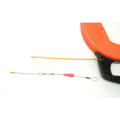 | Fabricada en fibra de vidrio de alta resistencia, facilita la instalación de cable en conductos aunque estén ocupados. Las guías de fibra se caracterizan por su fuerza de empuje y baja fricción. Diámetro: 4mm Longitud: 30m Cabezas: Cabeza de acero flexible e intercambiable (ø 6mm en su parte más ancha) Color carcasa: naranja Color guía: amarillo |