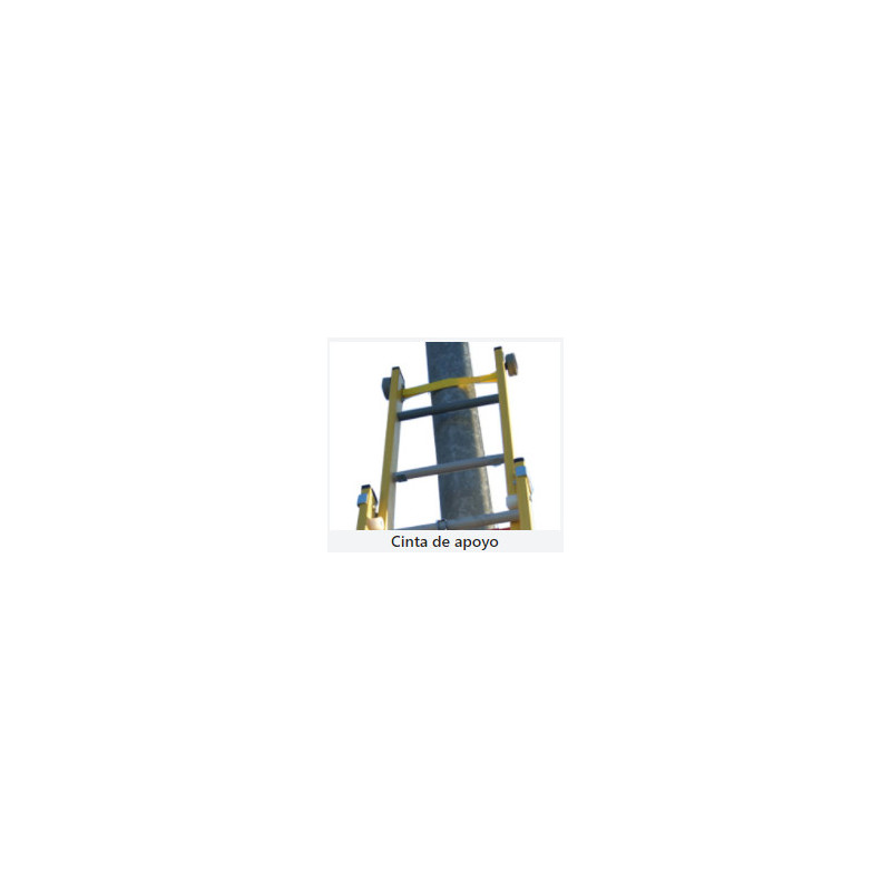 Está diseñada de tal manera que la cinta pasa por los herrajes fijados a la escalera y se apoya en el poste. Justo en este punto la cinta tiene una doble sección que nos proporciona una larga duración. Una vez apoyada la escalera en la viga o poste la cinta se ata con el trinquete de apriete incorporado. Este sistema nos proporciona seguridad en nuestros trabajos en altura, impidiendo la caída o movimiento de la escalera.