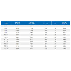 OPCIONALES: patas regulables, cinta de apoyo y cinta de apoyo y amarre.