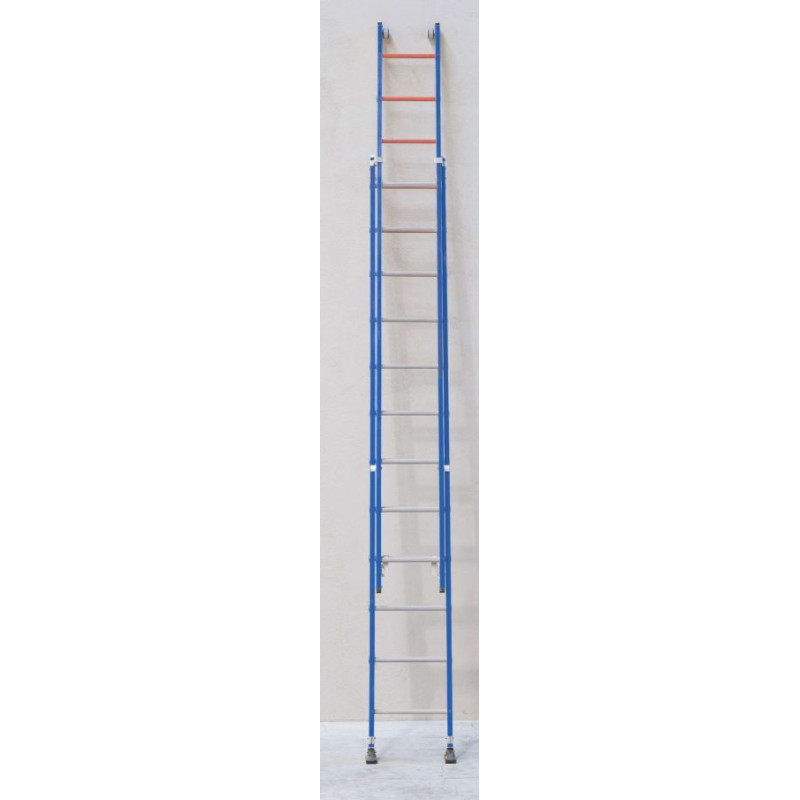 Escaleras de dos tramos que pueden ser utilizadas en conjunto o de manera independiente. Tramo interior dotado de zapata tipo nariz.