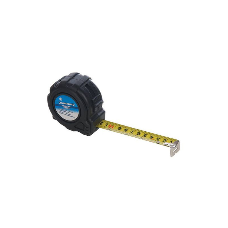Flexómetro de alta calidad, cajetín de goma resistente a los impactos. Gancho con doble remachado. Graduaciones imperiales y métricas de fácil lectura. Grado de precisión: Clase II.