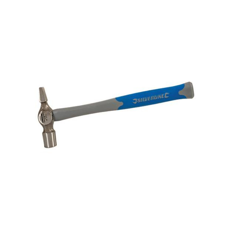 Cabeza de acero forjado. Mango de fibra de vidrio recubierto de nylon para absorber los impactos.
