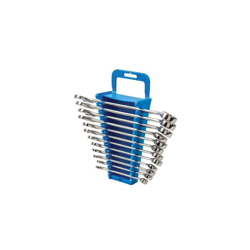 Juego de llaves variadas de acero cromo-vanadio endurecidas y templadas. Inclinación en 15º para mayor eficacia. Acabado pulido de alta calidad. Incluye llaves de 8, 9, 10, 11, 12, 13, 14, 15, 16, 17, 18 y 19 mm.