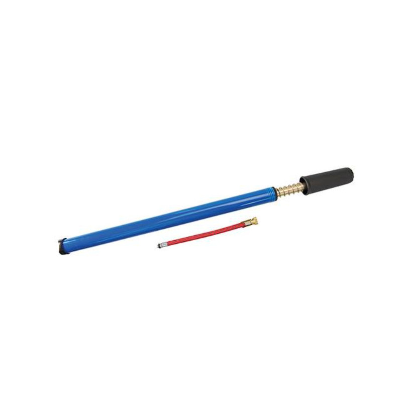 Bomba de gran longitud para inflar neumáticos de bicicletas fácilmente. Compatible con válvulas Schrader y Presta. Conector para válvula: 150 mm. Dimensiones (L x Día.): 400 mm x ø22 mm.