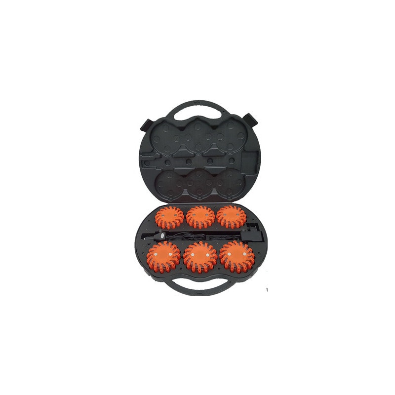 Maleta de 6 balizas de señalización LED color naranja.