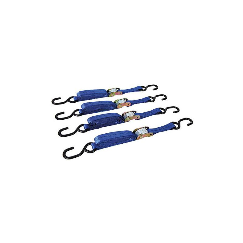 Correa de amarre de poliéster resistente a la intemperie y costuras reforzadas. Mecanismo de bloqueo de trinquete automático para sujetar y retirar cargas fácilmente. Cierre de liberación rápida con alta capacidad de tensión. Ganchos tipo S en ambos extremos. Resistente a los cortes y a la abrasión. Indicada para transportar cargas de gran tamaño y objetos con formas irregulares. Conforme a BSEN12195-2:2000