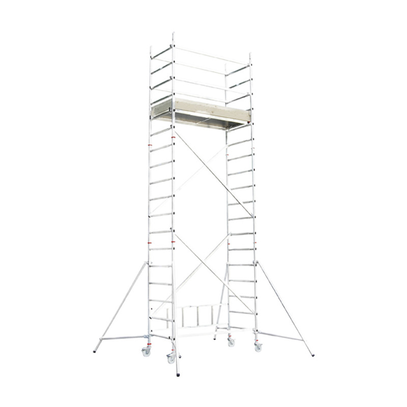 Andamio de trabajo ligero, flexible y con medidas de transporte y almacenaje compactas.