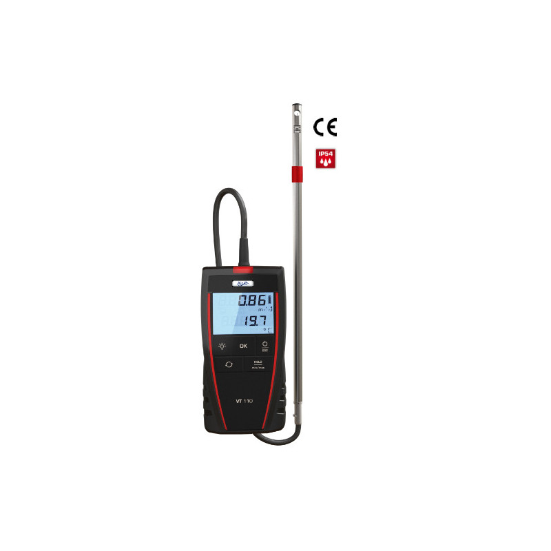 termómetro anemómetro portátil con sonda de hilo caliente de diámetro 8 mm,300m. long (0.15 a 30 m/s y 0 a 50 °C).