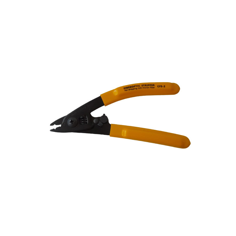 Peladora de precisión para cable de fibra óptica. El cable de fibra viene protegido por una finísima capa de plástico que hay que retirar para poder realizar la fusión. Con esta peladora se puede realizar este tipo de trabajo de precisión.