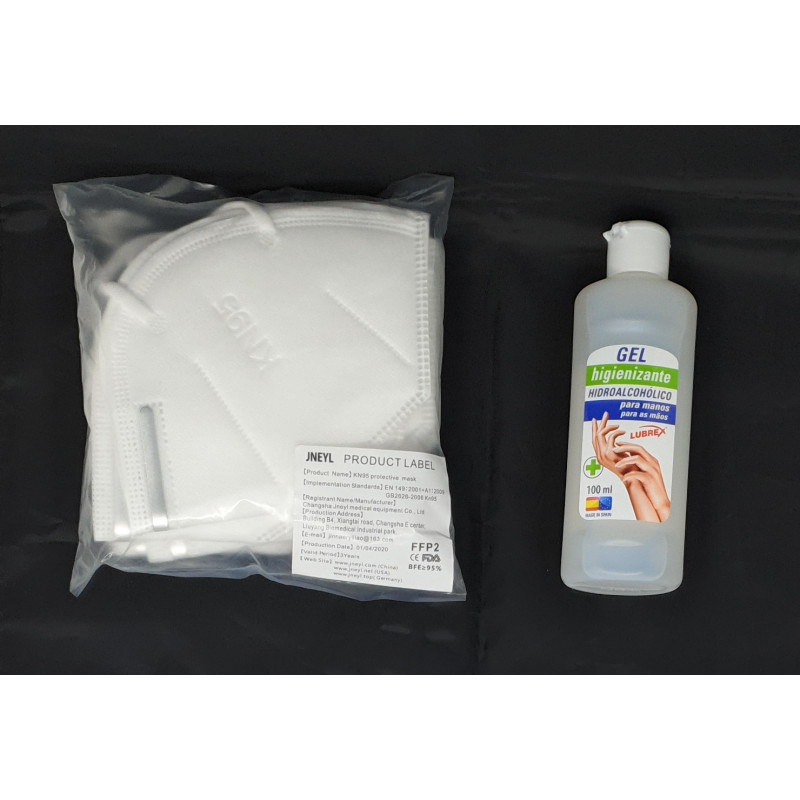PACK 5 MASCARILLAS FFP2 + 1 BOTE DE GEL HIDROALCOHÓLICO 100ML