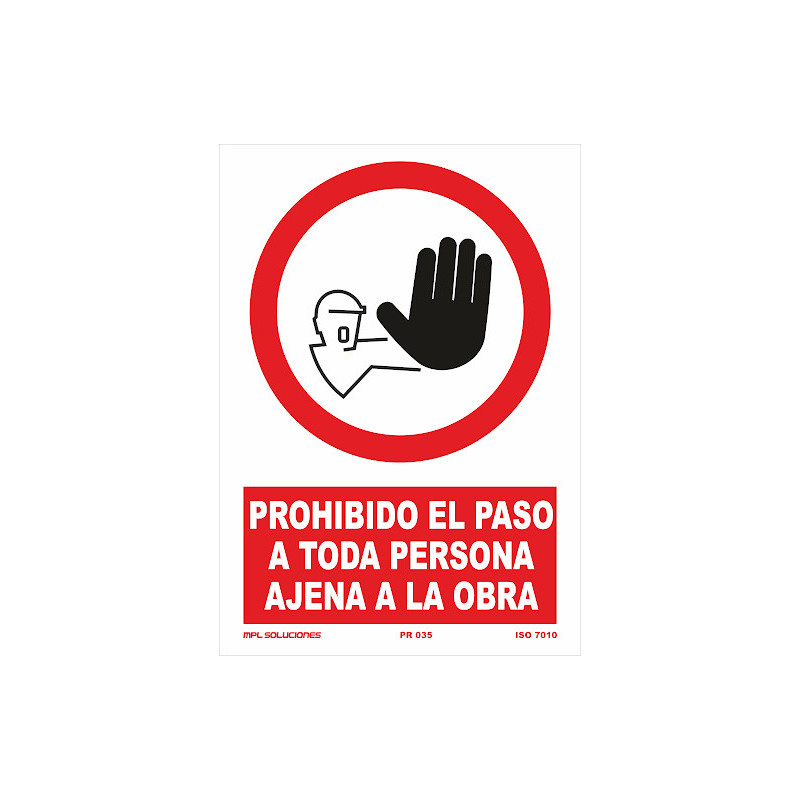 Señal de pvc tamaño folio (A4) PRHIBIDO EL PASO PERSONAL AJENO A LA OBRA