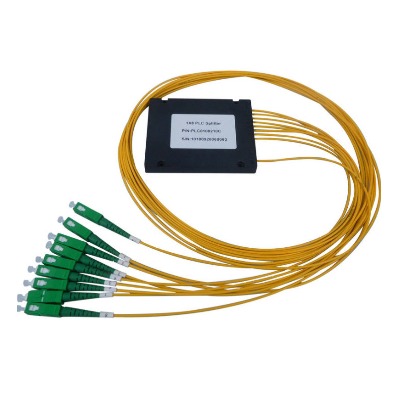 SPLITER PLC 1X8 CAJA ABS 100X45X10 ENTRADA SC/APC 150CM Y SALIDA SC/APC 150CM FIBRA 2mm G657A1