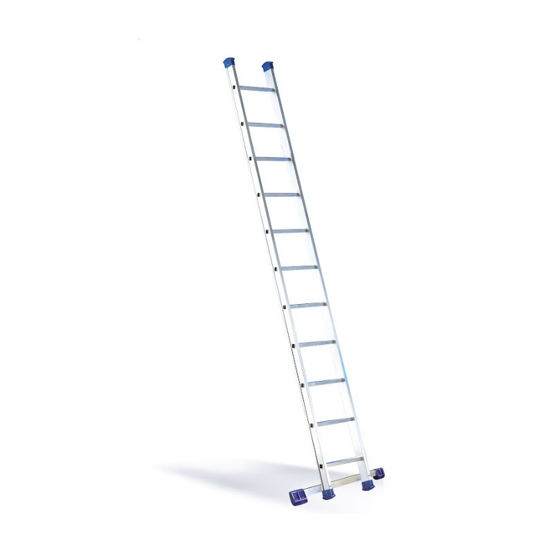 Escalera profesional de alta gama homologadas con la Norma EN131 y ensayadas por TUV SUD y el Instituto Politécnico de Milán. Tiene taco de goma de gran tamaño antideslizante. Cuenta con peldaños ergonómicos con una sección de 30x30mm. Peso máximo soportado 150 KG