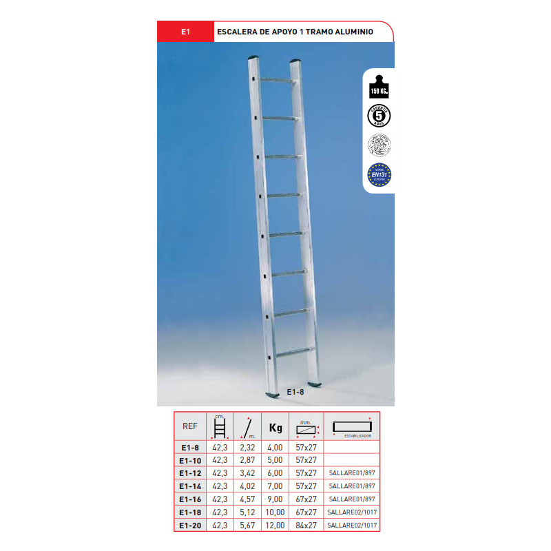 Incluye base estabilizadora obligatoria para escaleras de mas de 3 metros de apoyo