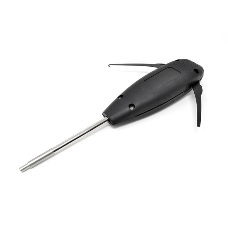 La herramienta tiene un gancho integral para el desmontaje de conductores terminados y una herramienta para el desmontaje de las regletas QDF-E y QDF-I.