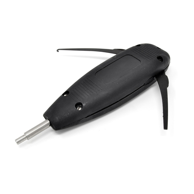 La herramienta tiene un gancho integral para el desmontaje de conductores terminados y una herramienta para el desmontaje de las regletas QDF-E y QDF-I.